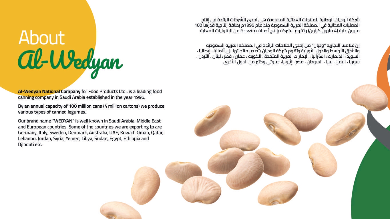 هي إحدى الشركات الرائدة في إنتاج المعلبات الغذائية في المملكة العربية السعودية منذ عام 1995م. بطاقة إنتاجية قدرها 100 مليون علبة سنوياً (4 مليون كرتون) تقوم شركة الوديان بإنتاج أصناف متعددة من البقوليات المعلبة.