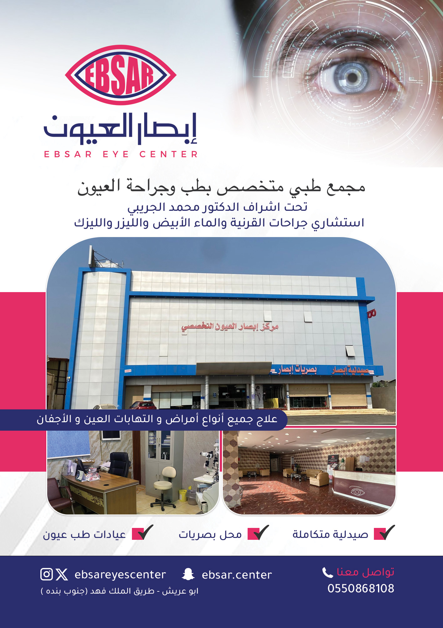 تحت اشراف الدكتور محمد الجريبي استشاري جراحات القرنية والماء الأبيض والليزر والليزك